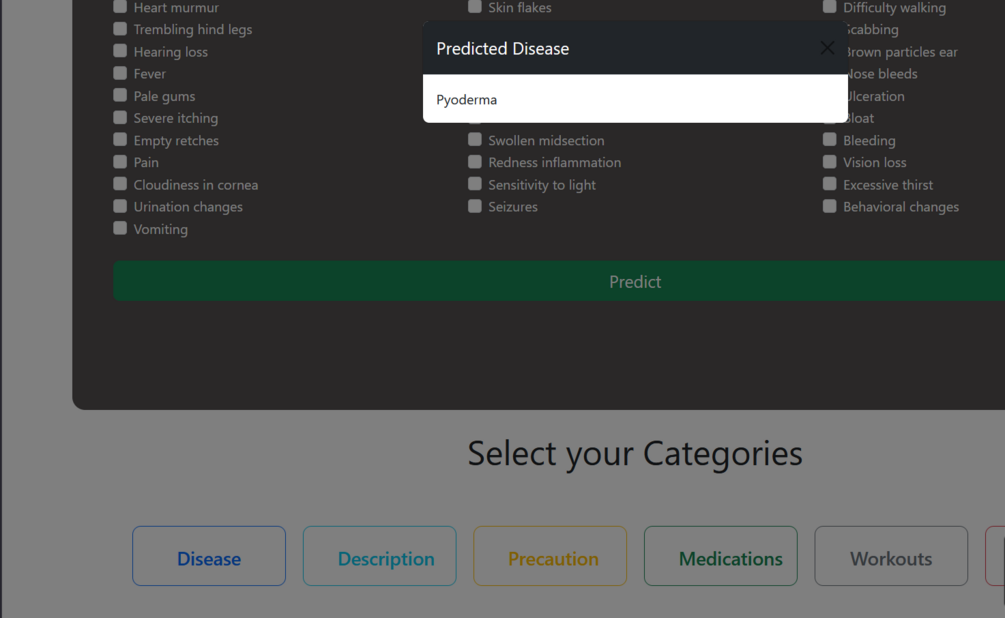 This Flask application predicts a dog disease based on user-provided symptoms.